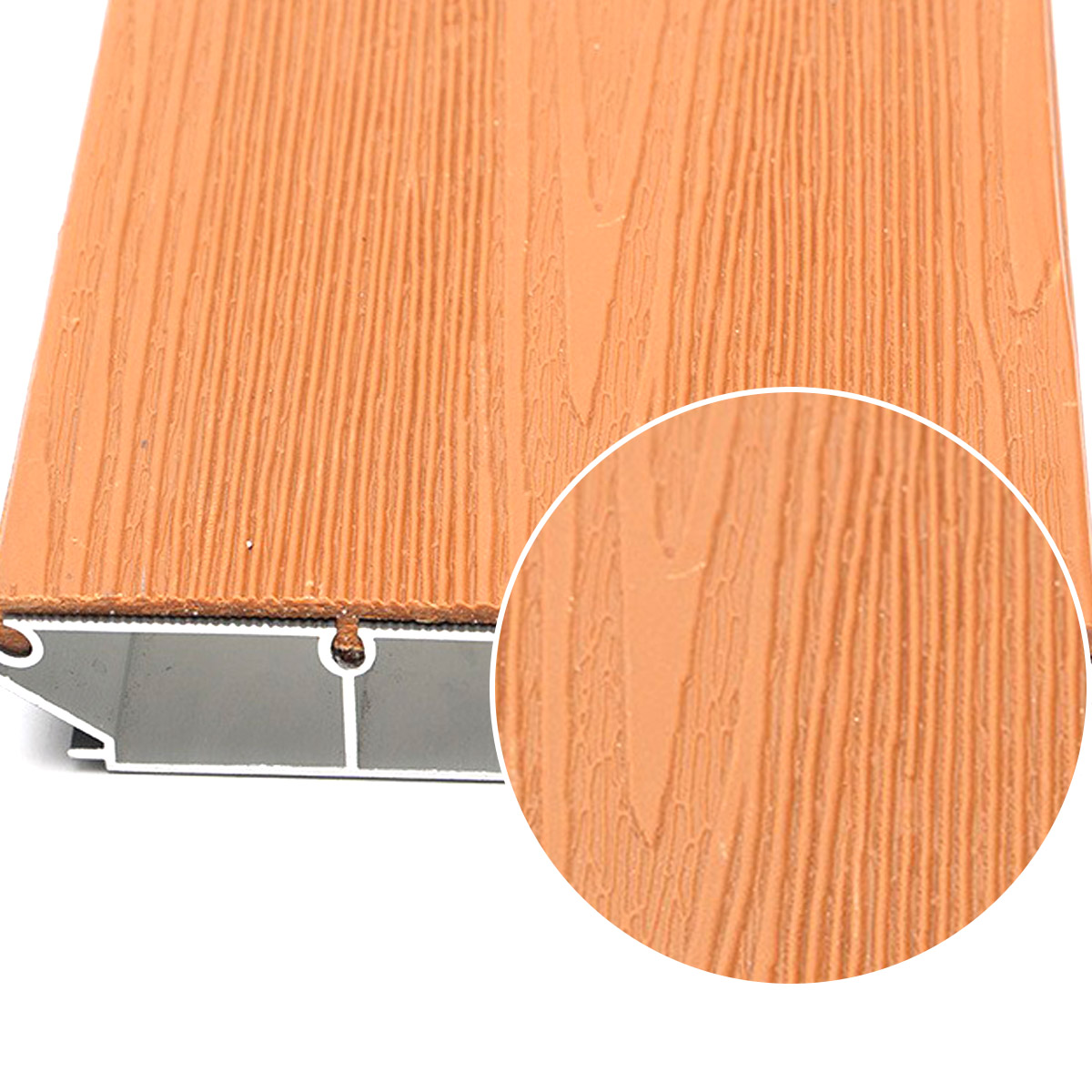 Anti-corrosion wood grain decking system for courtyards, anti-slip edging for swimming pools.