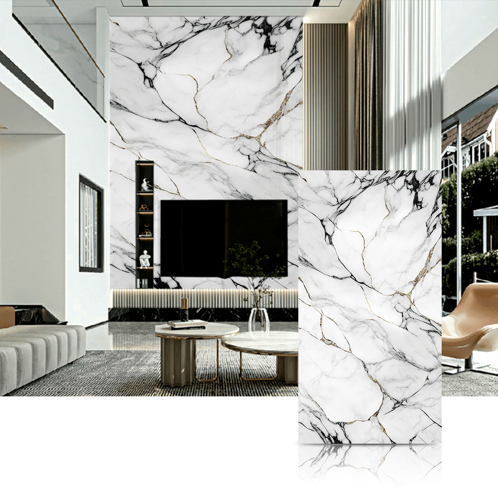 PVC Crystal Effect Panels: Elegant and glossy surfaces with luxurious stone-like textures, perfect for living rooms and bedrooms.